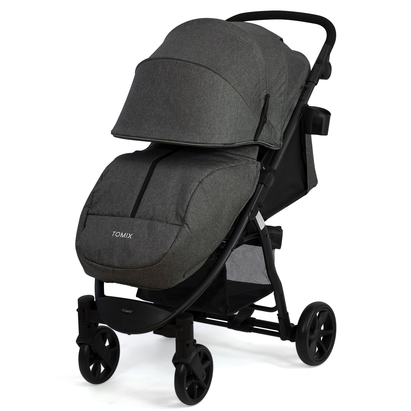 Коляска Tomix Bliss обладает высокой проходимостью в любых погодных условиях и легка в управлении за счет передних поворотных колес с возможностью фиксации.