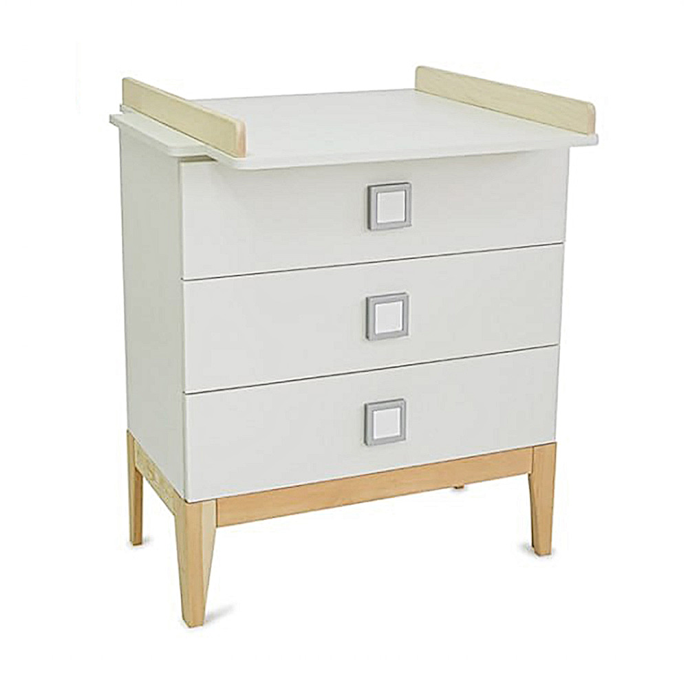 Комод детский Tomix "Rapido", (белый/бук), 3 ящика, ширина 80 см, съемный пеленальный столик, деревянные ножки, (KMD-2)