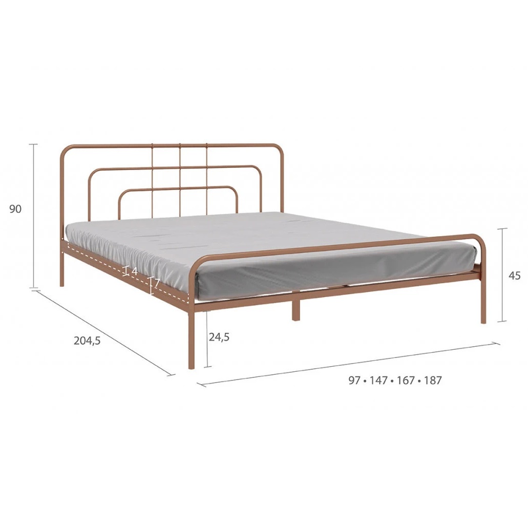 Металлическая кровать Мodena (Модена) выполнена в элегантном матовом золоте. Современный дизайн придаст интерьеру строгость и лаконичность, а высокая спинка с необычной геометрией преобразит атмосферу, сделав её более сказочной. Кровать отлично впишется в современные интерьеры, особенно хай-тек, минимализм, лофт, индастриал.