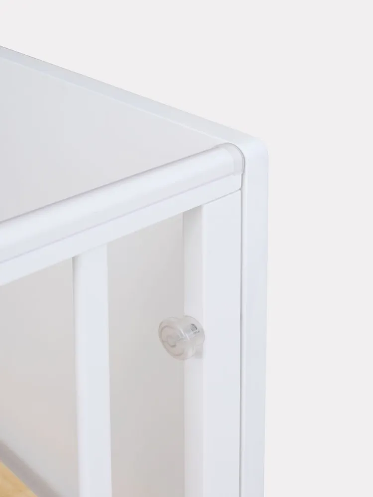 Оптимальное расстояние между узкими рейками гарантирует, что ручки и ножки крохи не застрянут, а скругленные верхние края кроватки защитят от ударов во время сна, отдыха и игр.