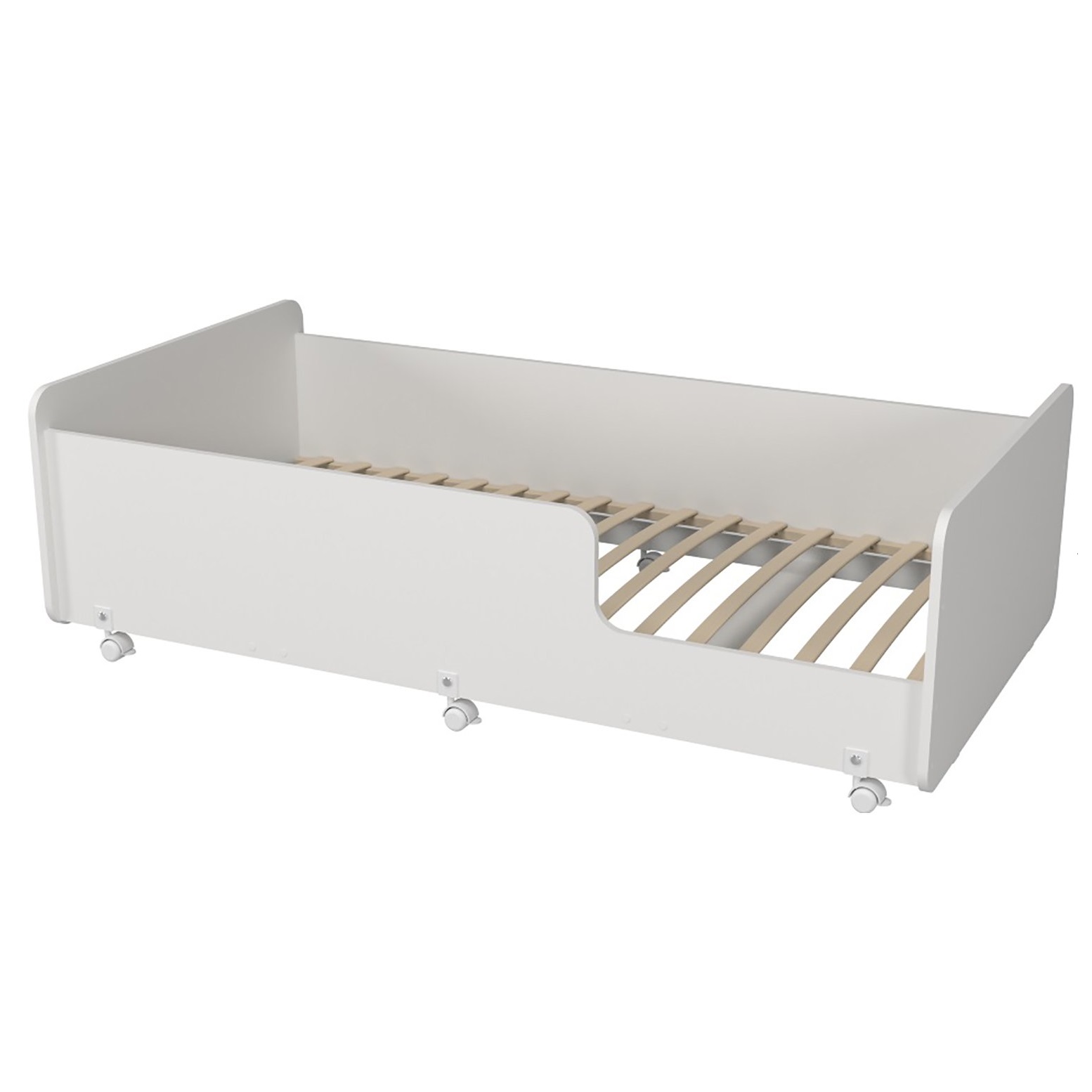 Детская кровать Капризун К439 – практичное решение для организации пространства небольшой детской комнаты в современном стиле. Все элементы изделия скруглены, поэтому дети не будут травмироваться, используя мебель. В основании кровати надежные ламели.