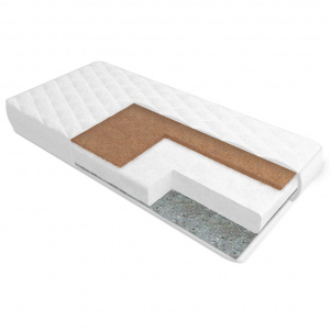 ThermoComfort - беспружинный двусторонний матрас, в основе матраса - Hollcon высокой плотности. Сторона А - термовойлок, средняя степень жесткости, сторона В - жесткая за счет плиты из многослойной кокосовой койры. Высота матраса 9см, что гарантирует правильное распределение веса ребенка, а также правильный и спокойный сон. Съемный чехол из бязи состоит из 100% хлопка, экологичен и практичен в использовании, разрешается стирка в стиральной машине.