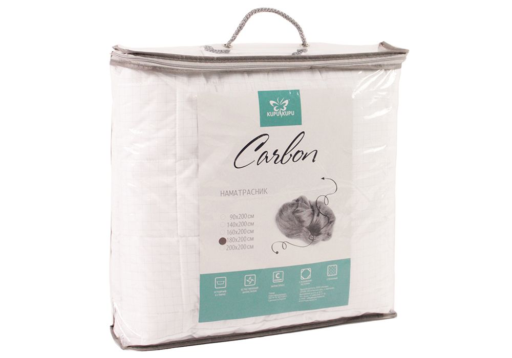 Наматрасник «Карбон» стеганый с бортом 35 см, с наполнителем - силиконизированным полиэфирным волокном. Ткань чехла белого цвета, выполнена из высокотехнологичной микрофибры с нитями карбона. Наматрасник «Карбон» выполняет не только защитную функцию, но и обеспечивает комфорт во время сна. Не скользит, удобно крепится, экологичен и гипоаллергенен. Отлично сглаживает неровности спального места. Прекрасное приобретение для людей, страдающих от аллергии.