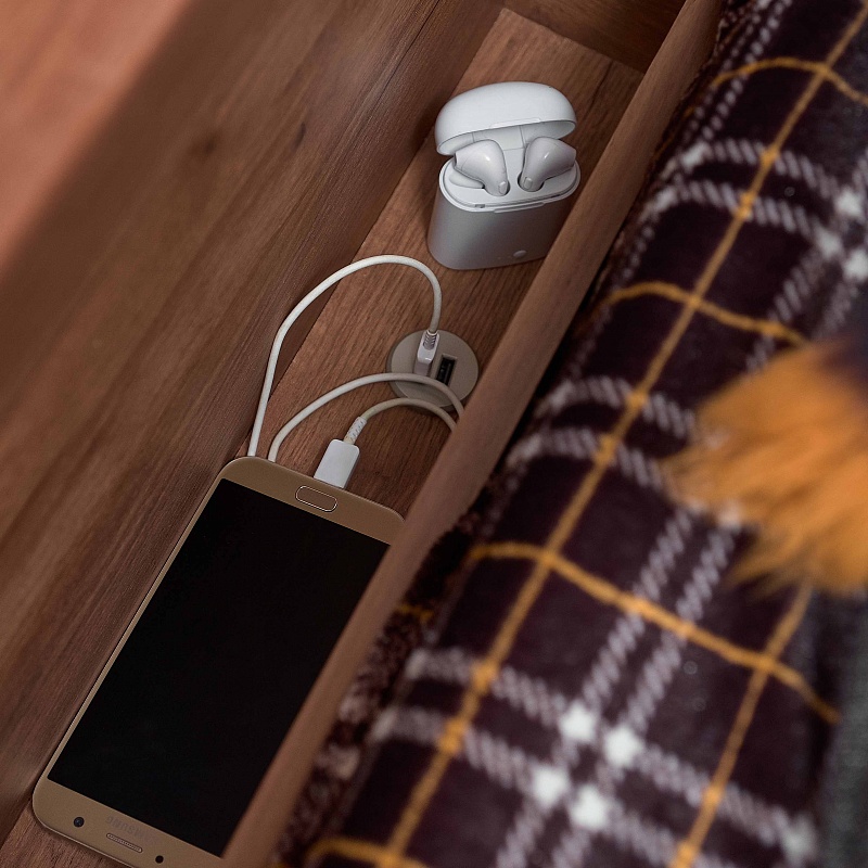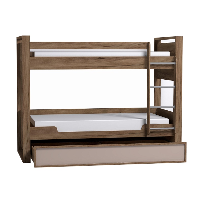 Отличным решением, позволяющим сэкономить место в небольшой квартире, будет двухъярусная кровать. В комплектации кровати - лестница с металлическими перекладинами диаметром 25 мм. Помимо спального места, на верхнем и нижнем ярусах кровати имеются дополнительные боковые ниши, которые помогут подростку держать под рукой необходимые перед сном вещи. Размер матраса для спального места: 190 х 90 см, высотой до 18 см. Хранить постельное белье будет удобно в выдвижном ящике на выкатных роликах. При необходимости можно организовать дополнительное спальное место другу, который останется ночевать. Для этого достаточно убрать разделитель и положить матрас. Размер матраса для дополнительного спального места: 190 х 80 см, высотой до 18 см. Ещё одно из преимуществ этой кровати - встроенное зарядное устройство CHARGE-S USB. Используется для зарядки мобильных телефонов, планшетов. Устройство имеет компактные размеры, что позволяет разместить его прямо в нише кровати. Такая функциональная кровать не оставит равнодушными ни родителей, ни детей.