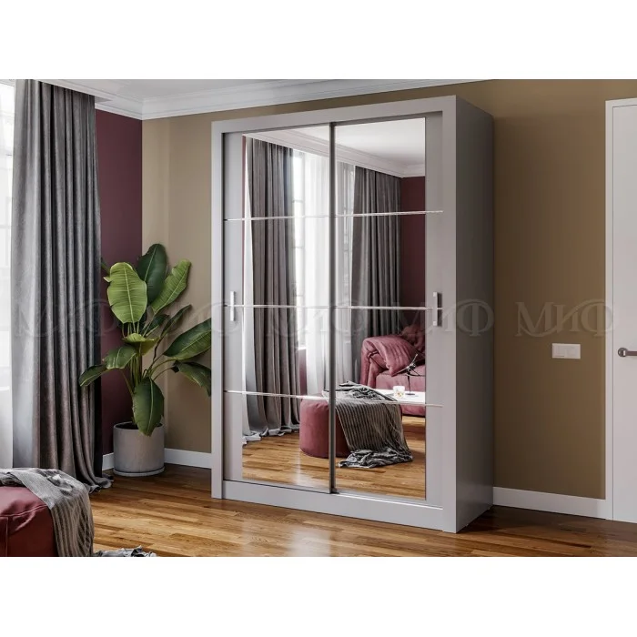 Шкаф-купе двухдверный с зеркалом «Неаполь» идеально подойдет ценителям спокойных цветовых оттенков. Зеркальные фасады с фацетной отделкой делают помещение зрительно шире и светлее. Нужен шкаф? Вы можете купить шкаф купе двухдверный и навсегда решить вопрос хранения большого количества вещей.