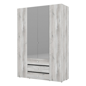 Распашной четырехстворчатый шкаф для одежды и белья Neo — практичная и функциональная система хранения в спальне. Шкаф отличает стильный дизайн, в облицовке использованы материалы трендовых цветов: Дуб Шавиниган и Антрацит. Лаконичные квадратные металлические ручки с гальваническим покрытием придают модели брутальный вид. Гардероб имеет классическое наполнение: два боковых отделения с полками для текстиля, центральное - с выдвижными ящиками на шариковых направляющих и отделением со стационарной штангой для плечиков. Дверцы центральной части шкафа оформлены зеркальным полотном, благодяря чему модель становится визуально легче, а комната выглядит более светлой и просторной.