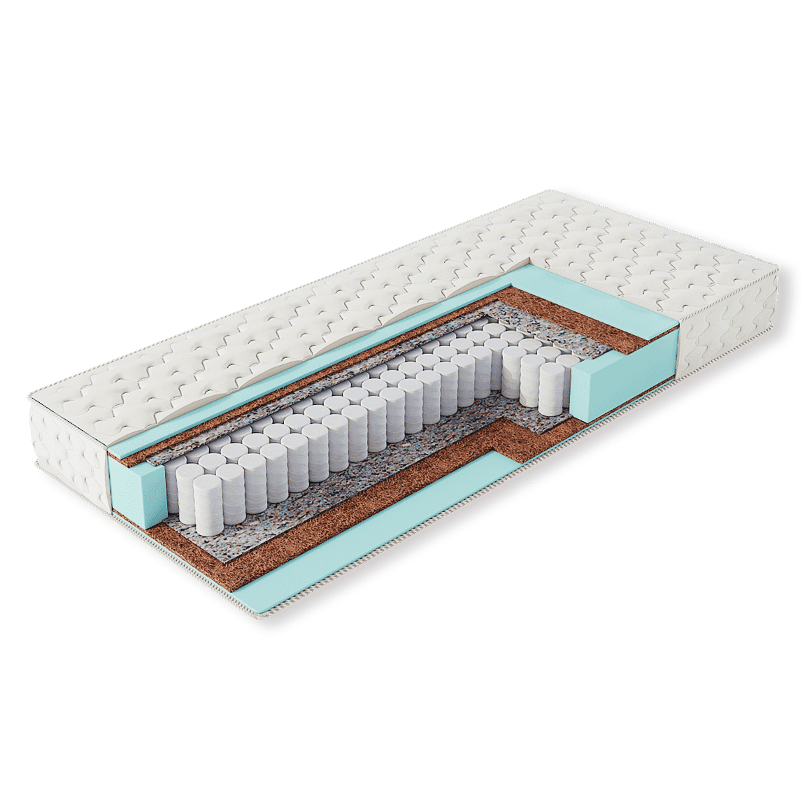 ППУ — 2 см двух сторон; Кокосовое волокно — 1 см с двух сторон; Термовойлок с двух сторон; Блок независимых пружин Pocket Spring; По периметру матраса каркас ППУ