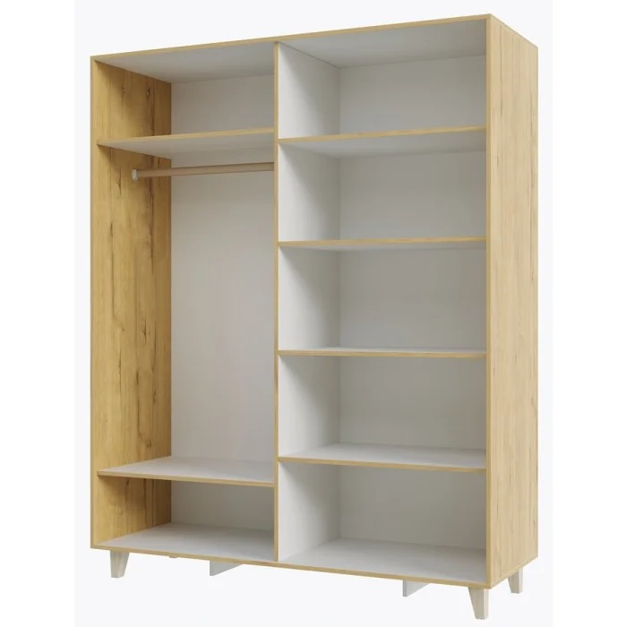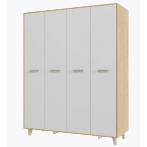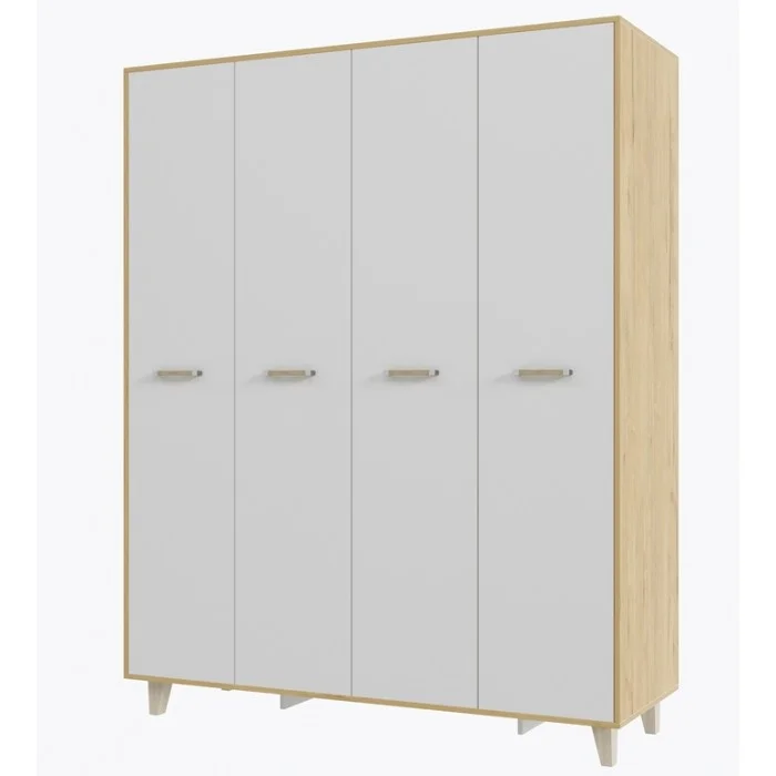 Спальня Сканди Шкаф 4-х дверный Белый/ Дуб бунратти Ширина: 160 см Высота: 194 см Глубина: 57 см Материал: ЛДСП Материал ножек: Бук Цвет: Дуб Бунратти/Белый