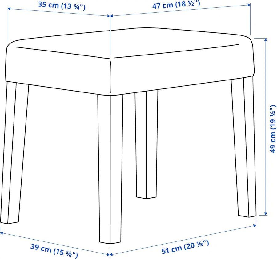 Можно использовать как дополнительное место для сидения или табурет для ног. Материалы и уход Чехол для табурета 100% хлопок Каркас табурета Ножка:Массив дерева, Морилка, Прозрачный лак Каркас сиденья:Массив дерева, Многослойный клееный шпон Подкладочная ткань сиденья:Высокоэластичный пенополиуретан (холодный) 35 кг/куб.м, Полиэстерная вата Застежка-липучка:100% нейлон