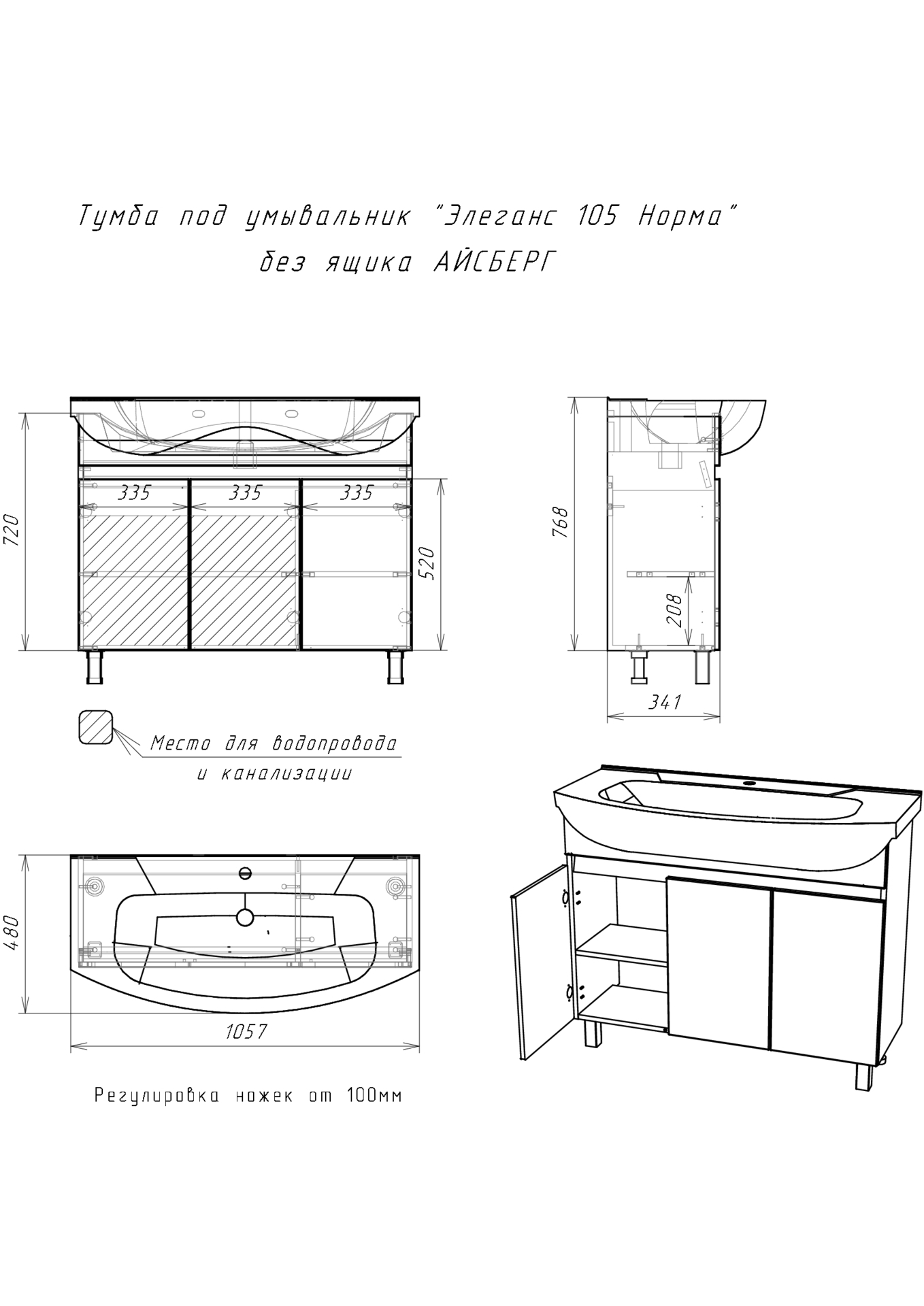 Тумба под умывальник Элеганс 105 Норма без ящка Айсберг DA1658T