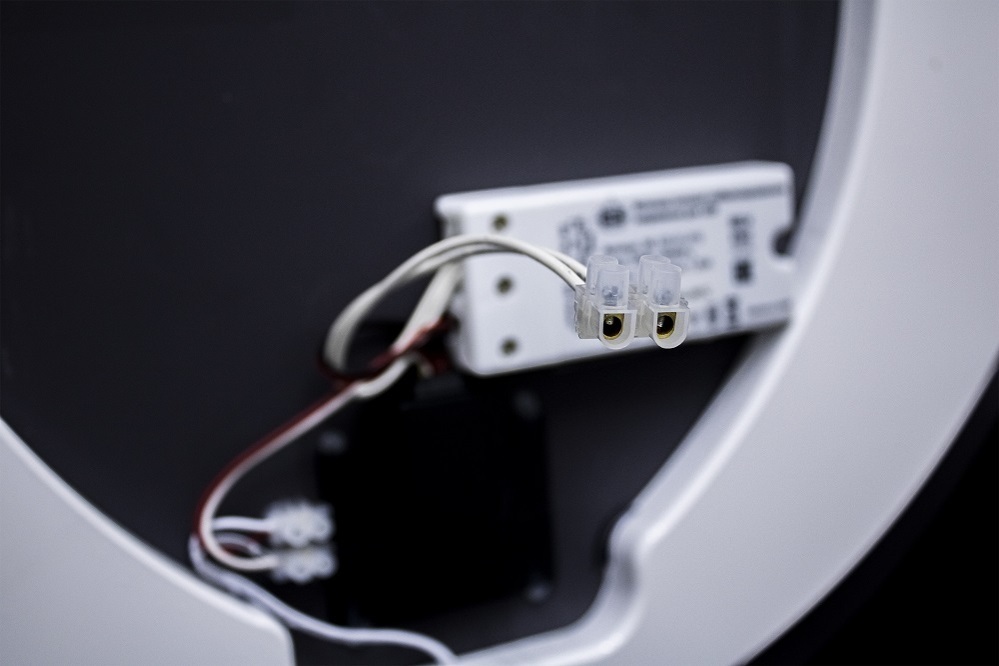 - В комплектацию зеркала входит источник питания, стабилизирующий напряжение (трансформатор), что позволяет подключать изделие к сети 220В.