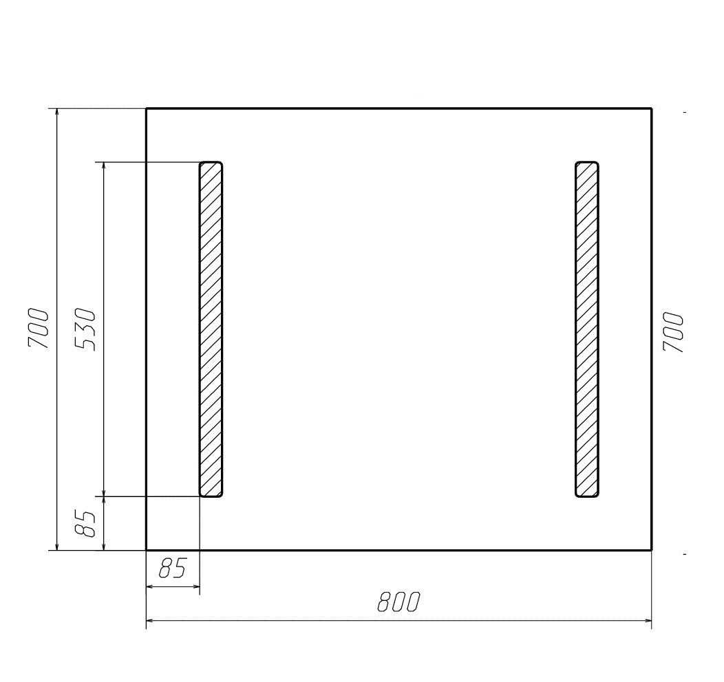 Размерный ряд зеркал от 40 см до 100 см в ширину. Начиная с 60 размера на зеркалах установлен сенсорный выключатель. До 50 размера, включительно, выключатель пластиковый и находится на корпусе.